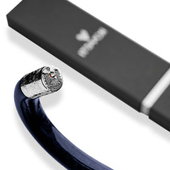 عصا من ألياف الكربون مع ملحقات فضية بتأثير ثلاثي الأبعاد وتأتي في عبوة من الورق المقوى الفاخر.