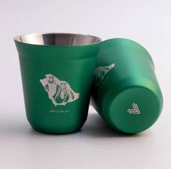 طقم من كوبين من الفولاذ المقاوم للصدأ معزولين حراريًا بطبقتين، مطليين باللون الأخضر، مع شعار علامتنا التجارية محفورًا في الأسفل وشعار مزاج على الجانب. إمكانية تخصيص الشعار أو الاسم على الكوب متاحة.