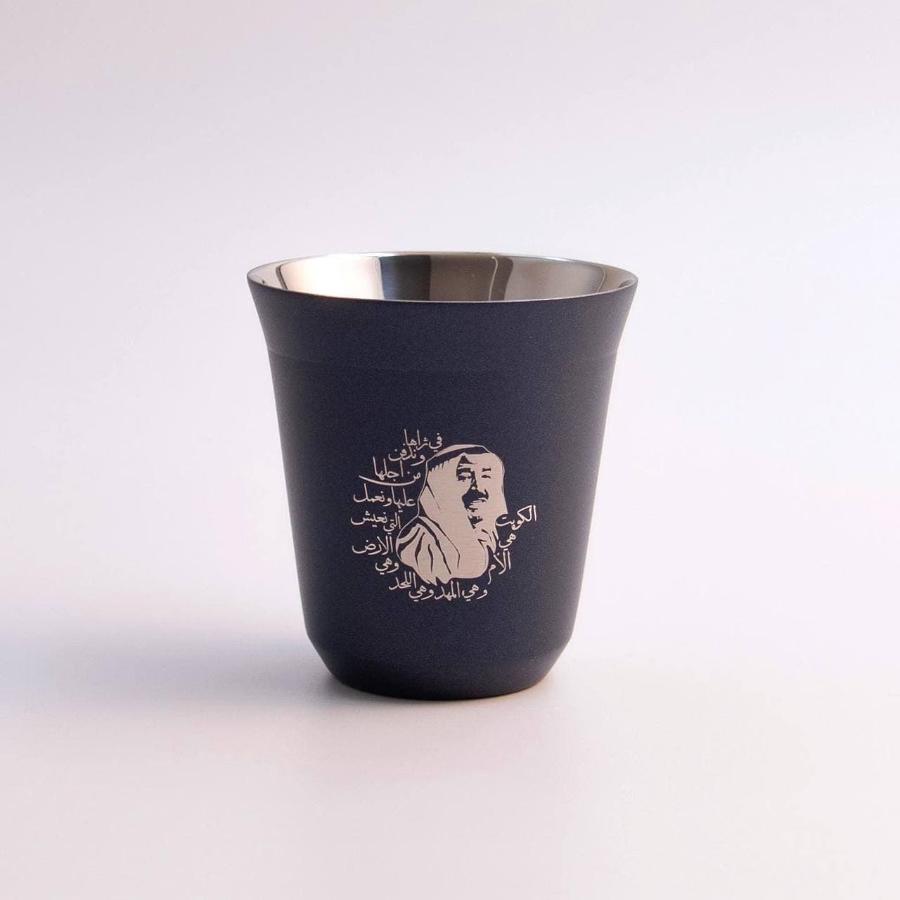 طقم من كوبين من الفولاذ المقاوم للصدأ، مطليين باللون الأزرق الداكن، معزولين حراريًا بطبقتين، مع شعار علامتنا التجارية محفورًا في الأسفل وشعار "مزاج" على الجانب. يمكن تخصيص الشعار أو الاسم على الكوب.
