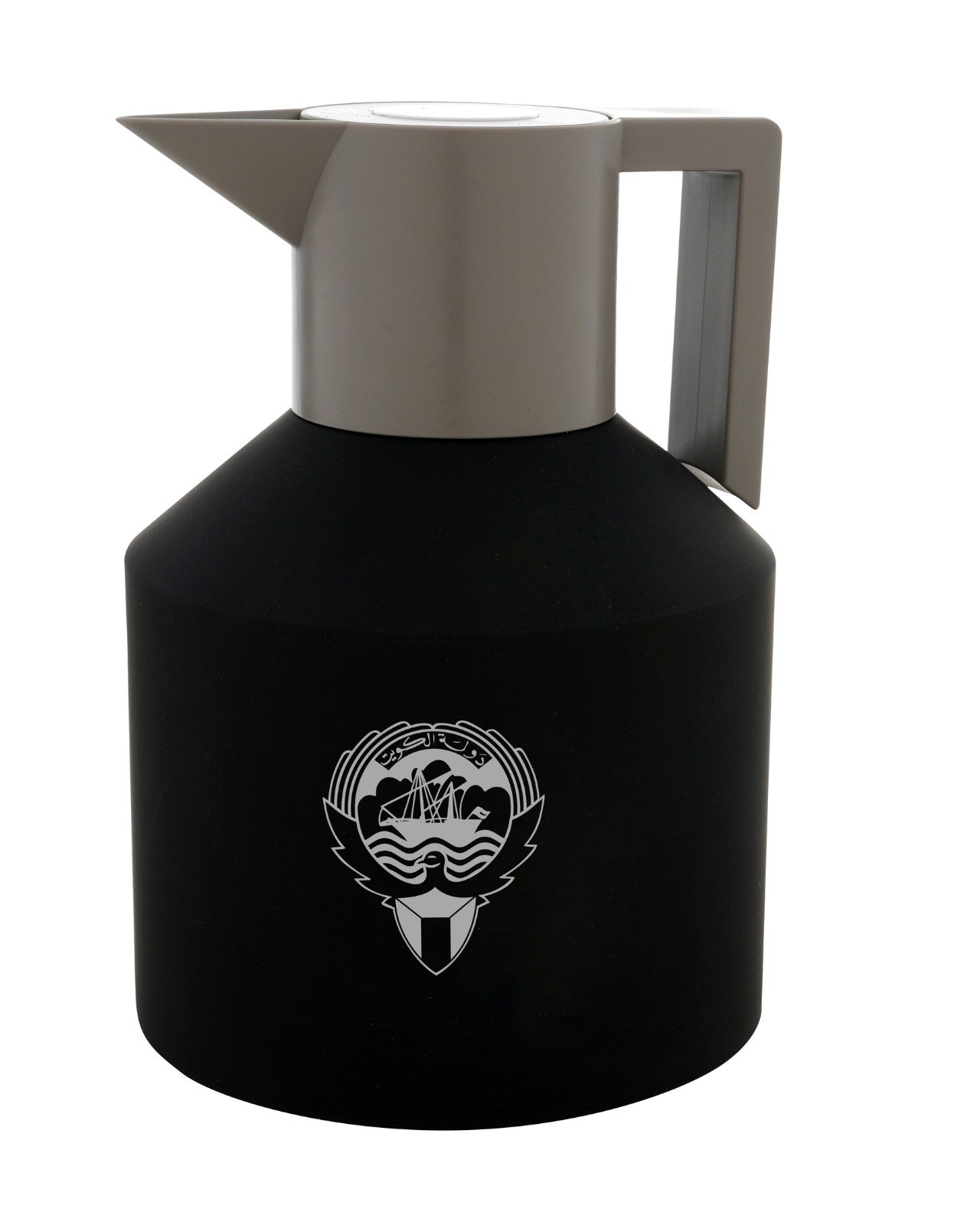 غلاية مزدوجة الجدران مطلية ومعزولة حرارياً من الفولاذ المقاوم للصدأ، بتصميم عصري مميز وغطاء أملس محكم الغلق. شعار علامتنا التجارية محفور في الأسفل وشعار دولة الكويت على الجانب. يمكن تخصيص الشعار أو الاسم على الغلاية.