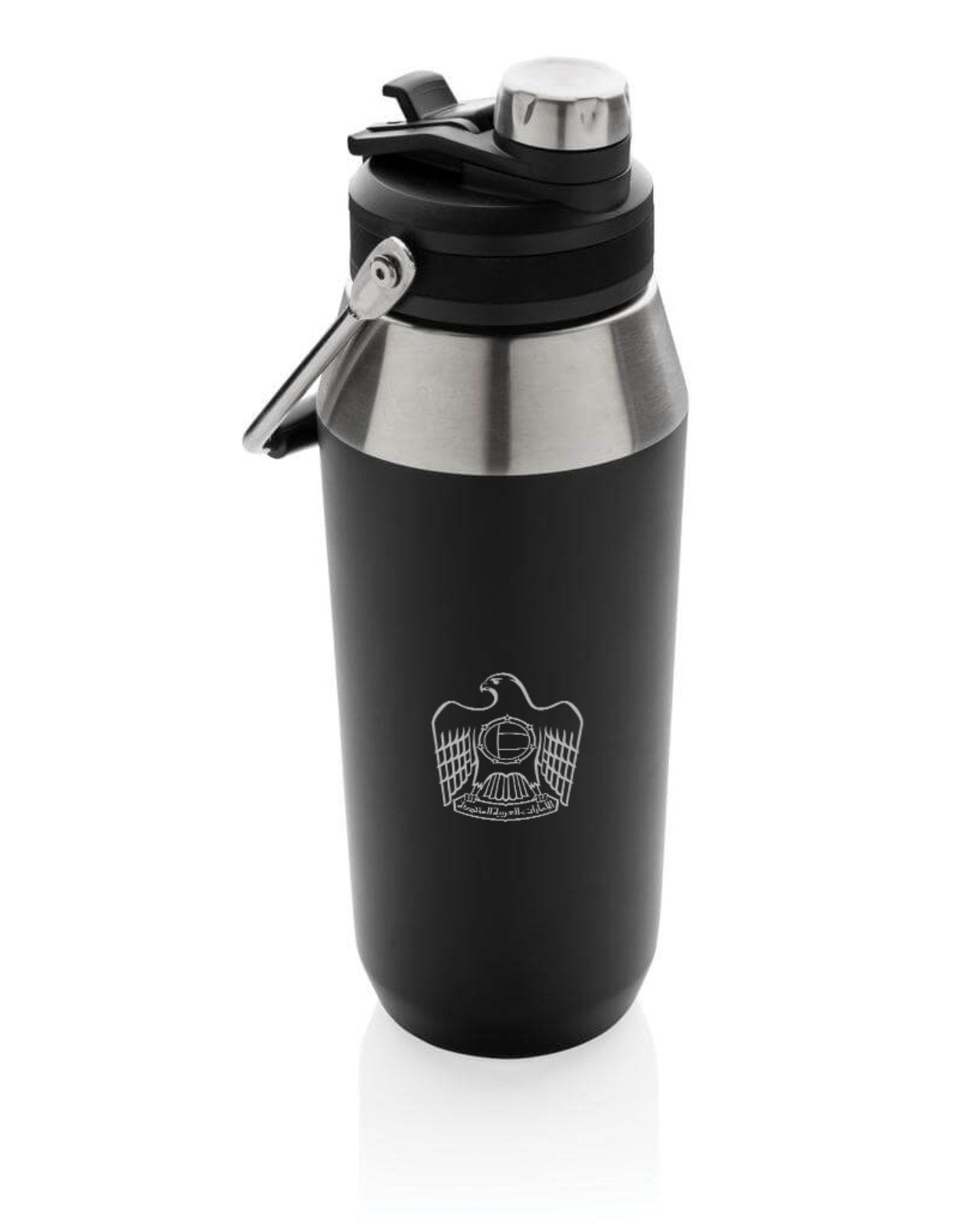 زجاجة ستانلس ستيل مثالية للاستخدام أثناء التنقل. غطاؤها مزدوج الوظائف، مزود بقشة قلابة وغطاء لولبي، لتتمكن من اختيار طريقة الشرب المفضلة لديك! تتميز الزجاجات بمقبض علوي كبير لسهولة الحمل. فولاذ مقاوم للصدأ معزول بتفريغ الهواء بجدار مزدوج، يحافظ على المشروبات ساخنة لمدة تصل إلى 5 ساعات أو باردة لمدة تصل إلى 15 ساعة. طبقة خارجية مطلية بالمسحوق تمنحها متانة عالية وفخامة. سعة 1000 مل. خالية من مادة BPA.