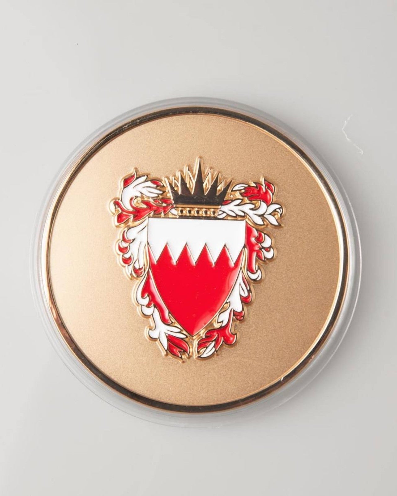 عملة معدنية صلبة تحمل شعار البحرين بتصميم ثلاثي الأبعاد مميز.