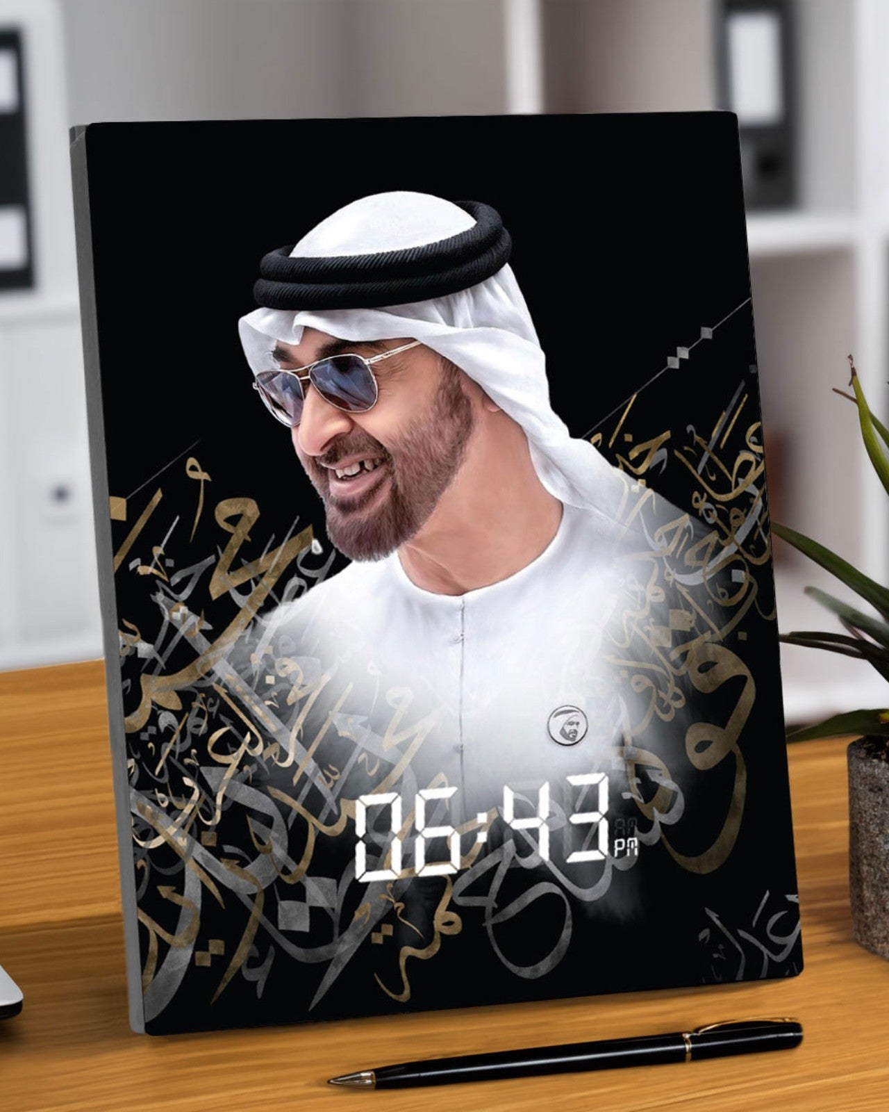 ويحتوي على صورة صاحب السمو الشيخ محمد بن زايد آل نهيان رئيس دولة الإمارات العربية المتحدة.