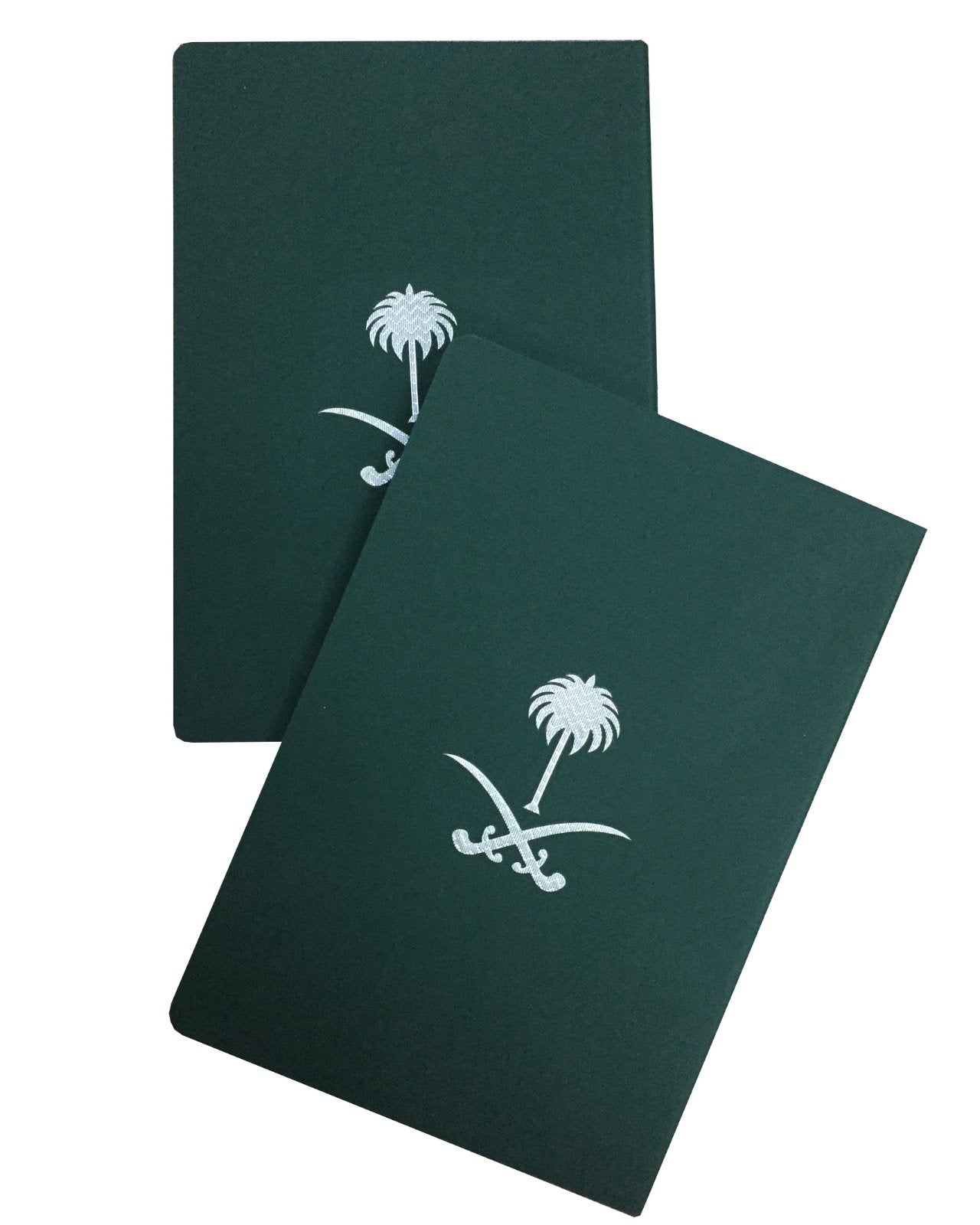 غلاف مطاطي مميز، شعار KSA مطاطي وشعار KSA مطبوع في كل صفحة، 80 ورقة بحجم A5.