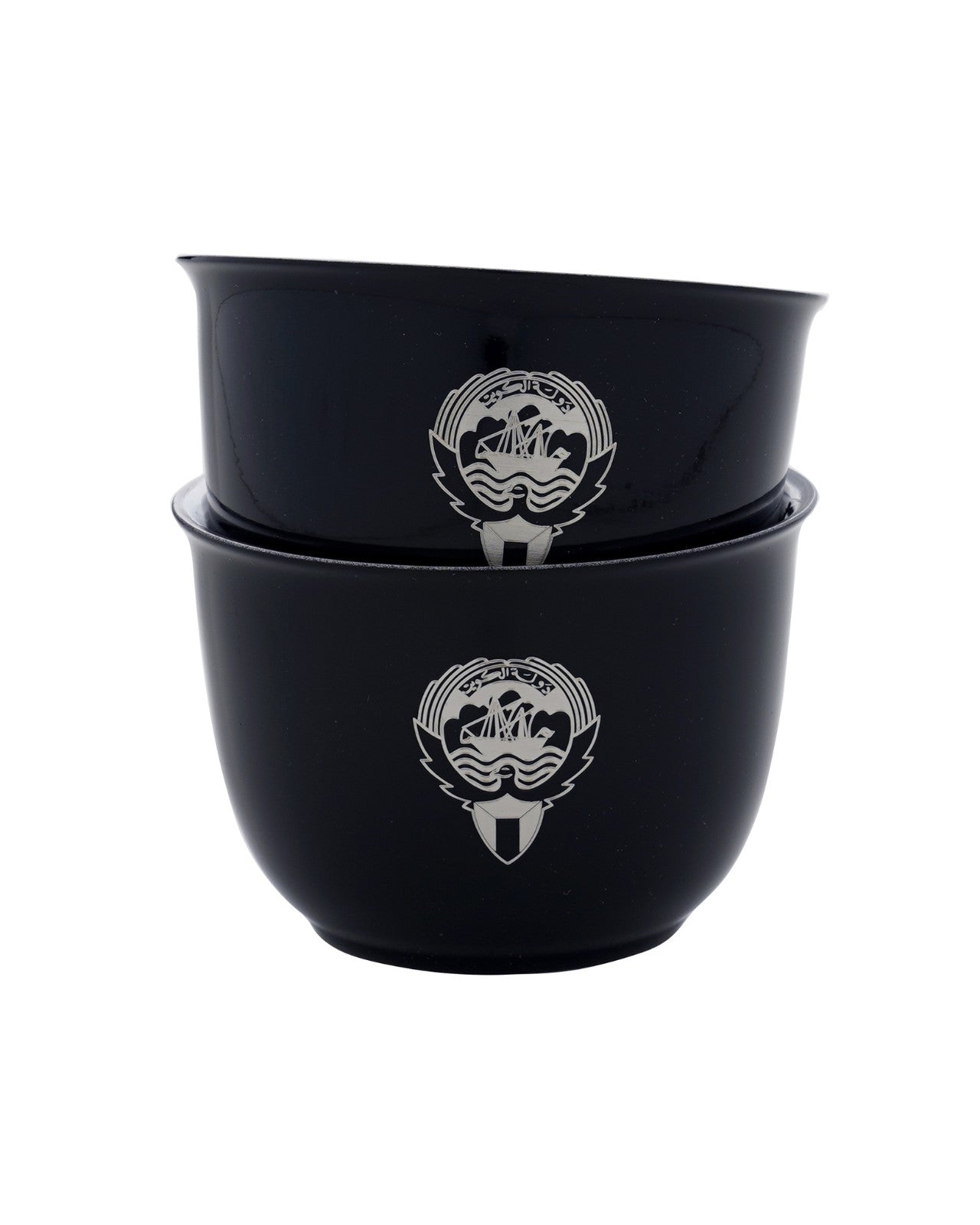مجموعة من ستة أكواب أنيقة مطلية بطبقتين معزولتين حراريًا من الفولاذ المقاوم للصدأ، محفور عليها شعار علامتنا التجارية أسفلها وشعار الكويت على جانبها. يمكن تخصيص الشعار أو الاسم على الكوب.