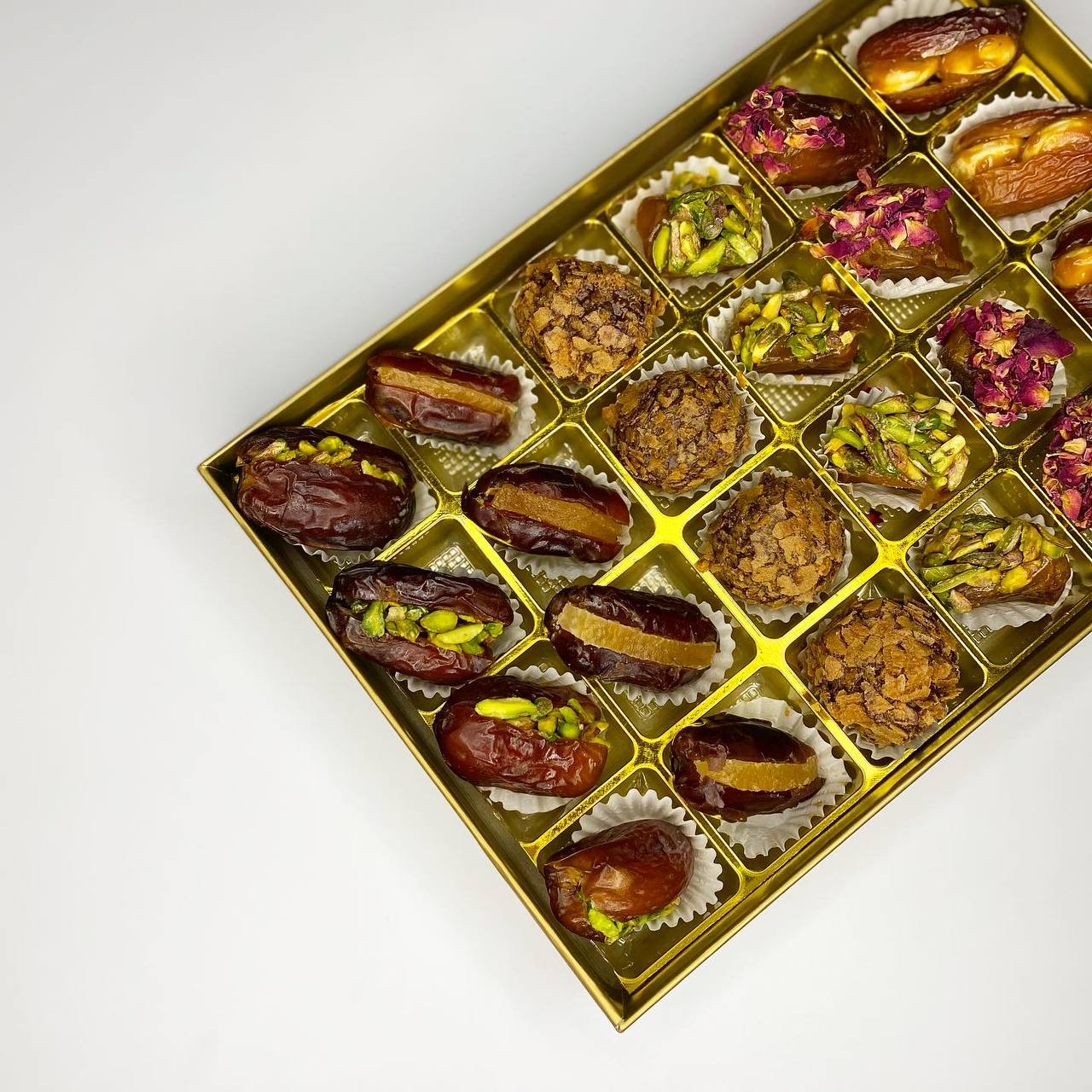 24 قطعة من التمور المحشوة من الأنواع التالية؛