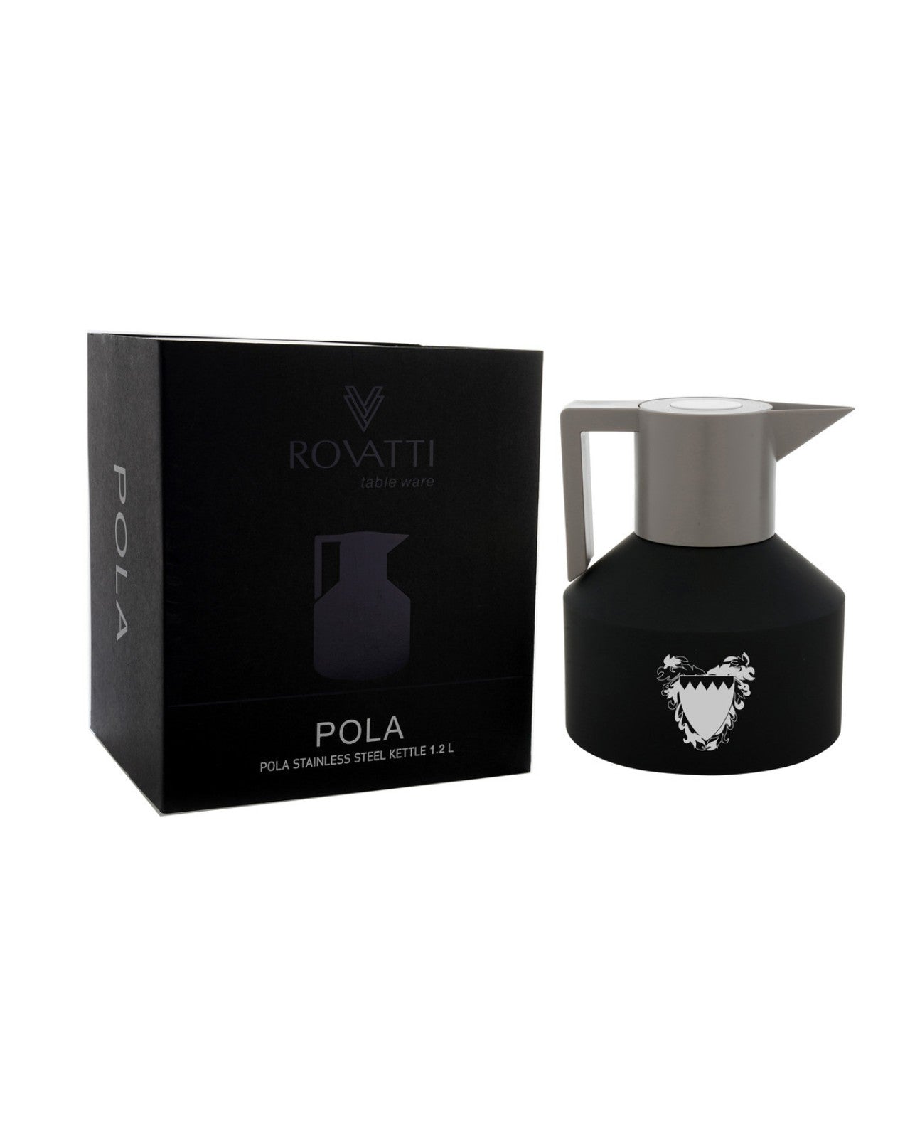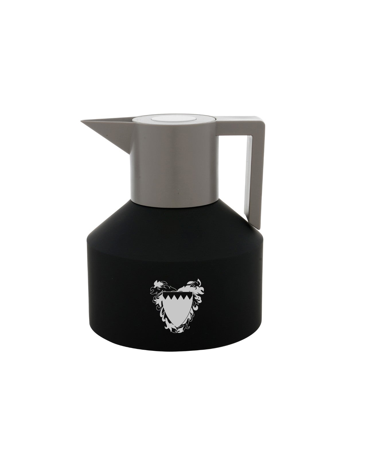 A painted double wall heat insulated stainless steel kettle with modern distinctive design and a smooth heat sealed cover. Our brand logo is engraved at the bottom and Bahrain state logo on the side. An option of logo or name customization is applicable on the kettle.