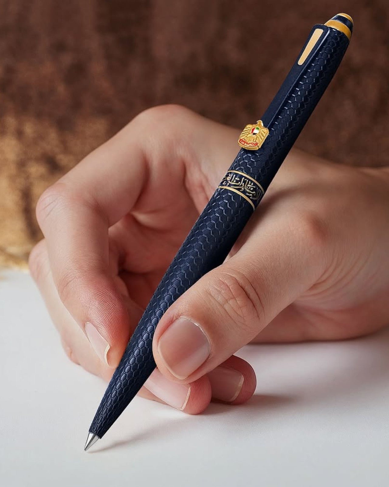 The luxurious Hexa pen features an elegant design bearing the UAE emblem.