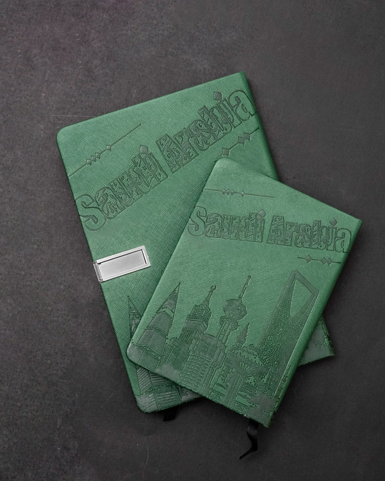 The big notebook has a USB memory that can be engraved with the company name or a person's name